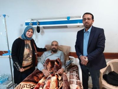 زار الاعلامي حيدر شوكان الزبيدي وبرفقة الست سعاد الشجيري امين السر الفنان علي فرحان الراقد في مستشفى الكندي اليوم الجمعة الموافق 14 / 1 / 2022 م للاطمئنان على صحته ونقل تحيات رئيس الاتحاد العربي الدكتور صالح المياحي والذي بدوره وجه تحية حب واحترام آلى جميع أعضاء المكتب التنفيذي وعلى رأسهم الدكتور صالح المياحي شاكر كل من سأل وأتصل عن حالته الصحية .