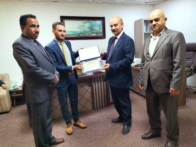 بعدها قدم الوفد درع التميز والأبداع للسيد المدير العام تقدير للجهود الكبيرة التي تقدم للمواطن