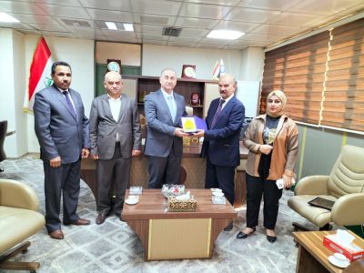 استقبل مدير عام التنفيذ القاضي بشار احمد محمد وفد من الاتحاد العربي للاعلام الالكتروني برئاسة الدكتور صالح المياح وعضوية كل من الاستاذ فرحان علي الساجت امين عام الشؤون القانونية واللواء جبار المياحي المستشار الأمني والزميلة فاطمة عدي امين عام الشؤون الإدارية