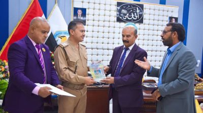 وقد رحب السيد القائد بزيارة الوفد شاكرا لهم هذه المبادرة في فتح مبدء التعاون بين الاعلام والأجهزة الامنية واثنى على جهود الاتحاد في نقل الحقائق والتعاون مع الأجهزة الامنية