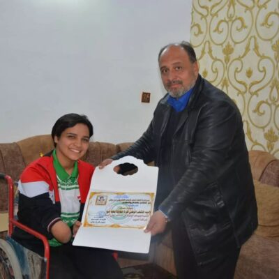 زار وفد من الاتحاد العربي للإعلام الالكتروني فرع ديالى برئاسة السيد قتيبة الموسوي رئيس الفرع ونائب رئيس الفرع السيد جليل الزهيري لاعبه المنتخب الوطني لكرة الطاولة اللاعبة نجلاء عماد