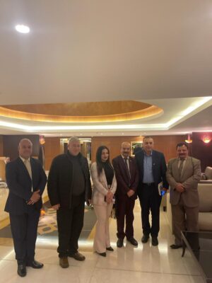 التقى رئيس الاتحاد العربي للاعلام الالكتروني الدكتور صالح المياح والوفد المرافق له نائب مجلس النواب الاردني الدكتور علي الطراونة والنائب محمد جميل الظهراوي عضو لجنة فلسطين النيابية اليوم بفندق روتانا بابل حيث رحب النائب الاردني بالوفد الزائر له بمحل اقامته في بغداد وشهدت الجلسة خلال اللقاء القصير سبل التعاوني المشترق بين الاعلام الالكتروني ومجلس النواب الاردني كما جرت مناقشة أبرز نتائج الحوار الخاص بتنظيم العلاقة مع دول الجوار وتناول اللقاء التداول في عدد من الموضوعات التي ترتبط بالواقع الاقتصادي والمعيشي بين البلدين الشقيقين العراق والاردن، أبرزها هدف تعزيز السوق العراقية الاردنية بالمواد الغذائية، وكذلك معالجة التحديات التي تواجه الوضع الزراعي والبيئي نتيجة قلة الإطلاقات المائية القادمة من الجانب التركي، وضرورة فتح حوار مع الجار تركيا بهذا الشأن وقال النائب الطراونة اني احب العراق وشعب العراق وله معزة خاصة في قلبي لان العراق هي العمود الفقري للدول العربية .