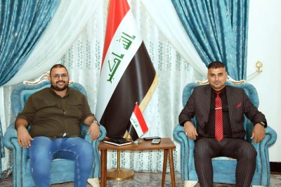 رئيس الاتحاد العربي للإعلام الالكتروني في البصرة منتظر الخفاجي يزور مدير مكتب حركة عطاء في محافظة البصرة طارق الحجامي