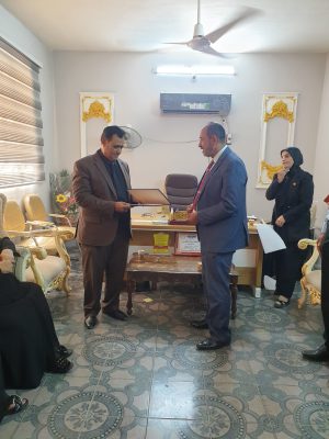 وكان في الاستقبال مدير الإشراف ومجموعه من الأساتذة التربوين وجرى خلال اللقاء نقل تحيات وسلام الدكتور صالح المياح رئيس الاتحاد العام للاعلام الالكتروني كما تبادل بين الطرفين موضوع الاعلام الالكتروني وأهميته في نقل سرعة الخبر ومدا استجابت الأشخاص لهذا الموضوع كما سرر الاعلام التربوي في هذه الزيارة من أهميه والتعاون المشترك بين الطرفين في فتح دورات تدريبية في الإعلام الالكتروني
