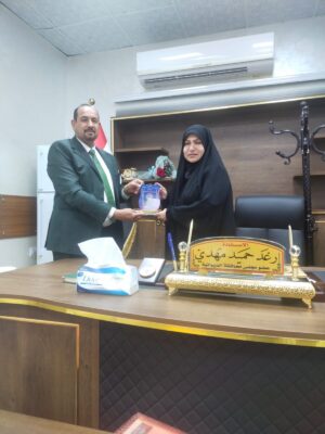 رئيس الاتحاد العام للاعلام الالكتروني فرع الديوانية يزور عضو مجلس محافظة الديوانية الأستاذة رغد حميد مهدي رئيس لجنة الاستثمار